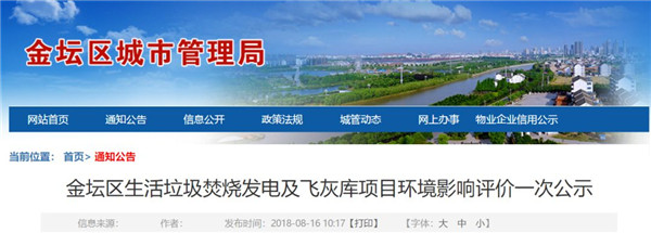 金壇區(qū)生活垃圾焚燒發(fā)電及飛灰?guī)祉?xiàng)目