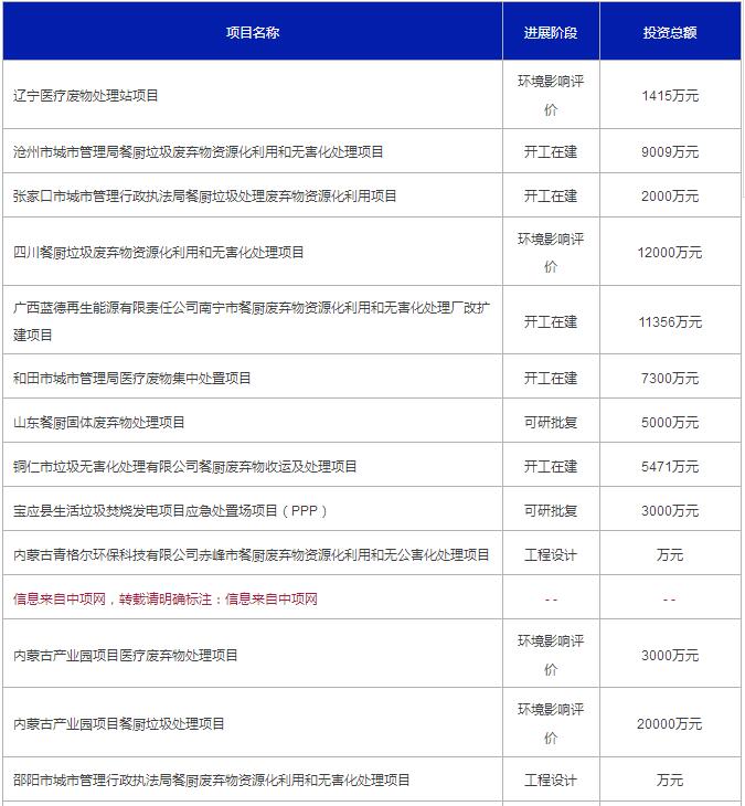 二、中項網(wǎng)權威發(fā)布2017年4月份國內擬在建廢棄物項目(以下為部分項目列表):