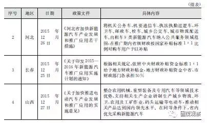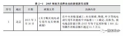 2015年,北京、河北、長春、山西等地陸續(xù)出臺了相關(guān)新能源車政策,紛紛響應(yīng)中央標(biāo)準(zhǔn)1:1配套補(bǔ)助新能源環(huán)衛(wèi)車,如表2-1所示。