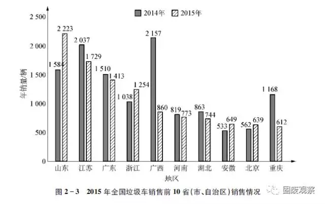 2015年全國垃圾車地區(qū)銷售情況