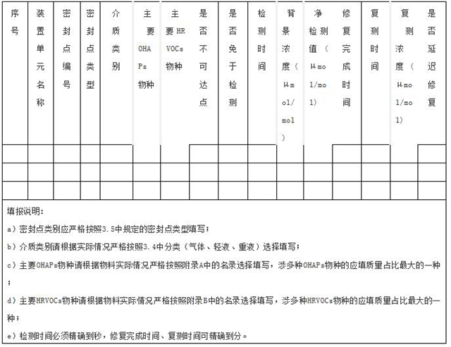 5.1 設(shè)備泄漏檢測與修復數(shù)據(jù)應進行記錄并保存至少 5 年,記錄內(nèi)容包括但不限于附錄C所列示的信息。