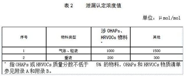 泄漏檢測值大于或等于表 2規(guī)定的泄漏認定濃度值時,即認定發(fā)生了泄漏。泄漏設(shè)備應即時系掛泄漏標識牌。泄漏檢測值小于 20,000 μmol/mol時系掛黃色標識牌,泄漏檢測值大于或等于 20,000μmol/mol時系掛紅色標識牌。