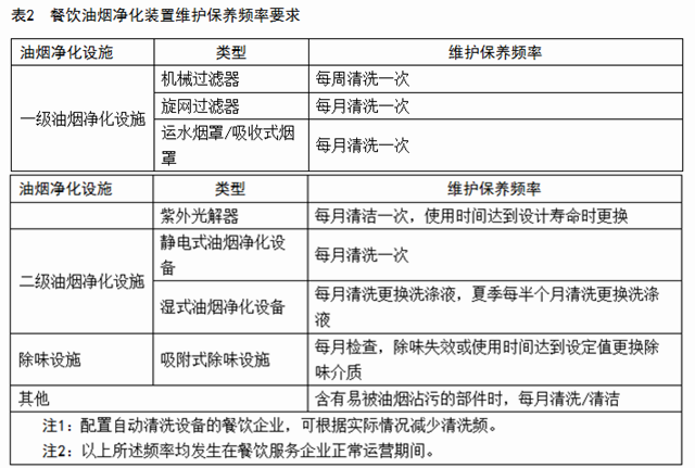 7.3 油煙凈化設(shè)施維護保養(yǎng)頻率按表2的規(guī)定。