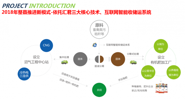 行業(yè)內(nèi)的立足與發(fā)展,僅僅依靠技術(shù)的帶動,是無法走得更久更遠(yuǎn)的,唯有全方位的循環(huán)系統(tǒng),智能的產(chǎn)業(yè)鏈才能建立起公司整體的服務(wù)體系。于是,匯君環(huán)能在2017年商業(yè)模式上進行了創(chuàng)新,打造出整縣推進新模式,2017年國家批復(fù)了586個畜禽養(yǎng)殖大縣進行重點資金支持,匯君環(huán)能與時俱進制訂了整縣(市)的區(qū)域規(guī)劃。包括從最初的處理體系打造,到后續(xù)的技術(shù)處理打造,再到最終的肥料化和資源化產(chǎn)品的打造,通過這一條線的運營,走一個全產(chǎn)業(yè)鏈路線。另一塊,公司整合上游資源,聯(lián)合終端,下游端,種植端與農(nóng)業(yè)端,把資源掌握在自己手里,最終面向市場。