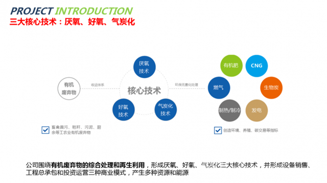通過5年的潛心、實干積累,使匯君環(huán)能擁有了自己的一套核心技術(shù)模式,即厭氧與好氧相結(jié)合的工藝模式,保證每一個項目達(dá)到效果最優(yōu)化。厭氧路線,利用公司厭氧專利核心設(shè)備,將有機廢棄物轉(zhuǎn)化成沼氣,用來發(fā)電、脫碳制壓縮生物天然氣和供熱;好氧路線,利用智能化高溫好氧設(shè)備,直接產(chǎn)生符合國家標(biāo)準(zhǔn)的525有機肥,根據(jù)肥料客戶需求,還會再添加復(fù)配一些菌種,生產(chǎn)菌機肥。兩條核心技術(shù)路線綜合運用發(fā)展的基本策略,使公司在行業(yè)內(nèi)奠定了厚實的基礎(chǔ),區(qū)域整體規(guī)劃綜合處治理,實現(xiàn)了有機廢棄物資源化和肥料化相結(jié)合的匯君模式。