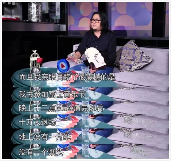 矮大緊老師曾在節(jié)目中提到過,自己去東京參加富士音樂節(jié),活動結束時讓他感到非常震撼,十萬人退場地上竟然沒有一點垃圾。更還有一些標榜自己“個性十足”的粉絲在午夜排起長隊等候扔垃圾。