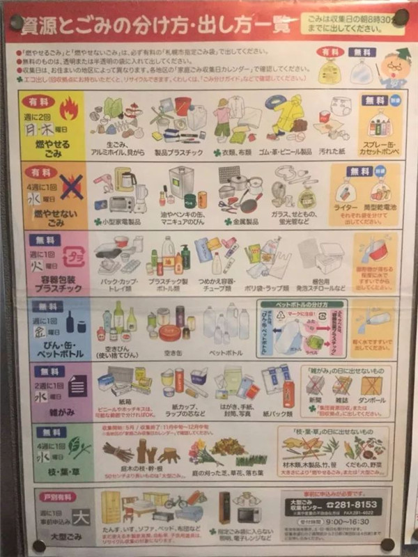 各種垃圾的收集日期都不同,不論是歪果仁,還是日本當?shù)厝?,只要搬家,第一件事就是向鄰居要一份當市的垃圾分類指南?/p>