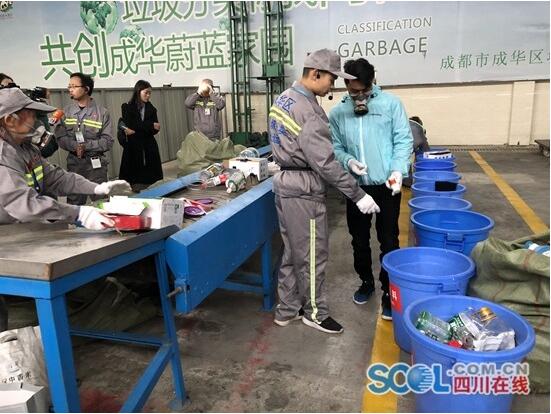 體驗小區(qū)垃圾分類成效時,參觀團對分類垃圾的去向非常關心:可回收垃圾分錯了怎么辦?有害垃圾是如何處理的……他們的部分問題在成都子陽清潔服務有限公司垃圾分類分揀廠得到了解答。