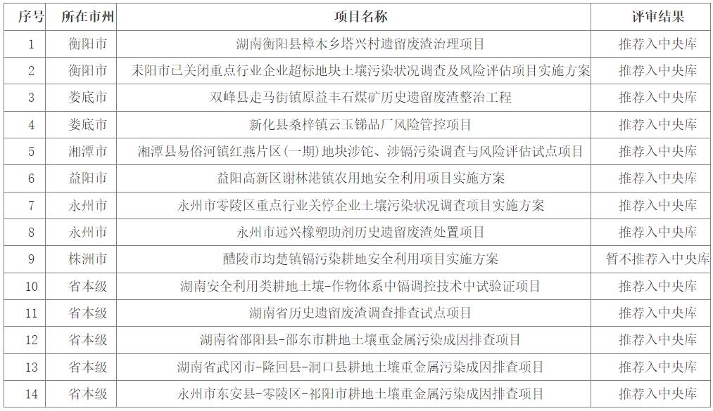 湖南省生態(tài)環(huán)境廳關(guān)于2022年度第一批土壤污染防治項(xiàng)目、地下水污染防治項(xiàng)目評審結(jié)果的公示
