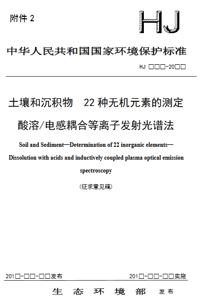 土壤和沉積物 22種無(wú)機(jī)元素的測(cè)定 酸溶/電感耦合等離子發(fā)射光譜法(征求意見(jiàn)稿)