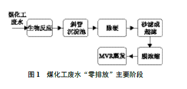 1零排放常見工藝隨著的收緊,國(guó)家對(duì)已建和新建的煤化工項(xiàng)目要求廢水“零排放”。雖然不同煤化工工藝產(chǎn)生的廢水性質(zhì)有所差異,但傳統(tǒng)處理煤化工廢水的工藝大多包括生物活性處理、化學(xué)沉淀、懸浮物過(guò)濾、膜濃縮產(chǎn)水回用和蒸發(fā)固化等。圖1 為煤化工廢水“零排放”主要階段示意。膜濃縮和蒸發(fā)結(jié)晶工藝對(duì)進(jìn)水硬度有嚴(yán)格要求,...