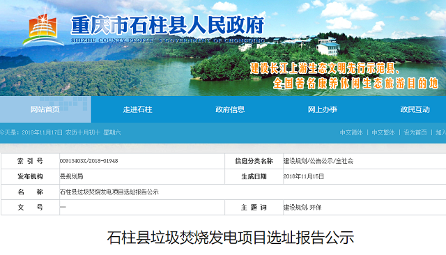 【中國環(huán)保在線 地方新聞】根據(jù)《重慶市生活垃圾焚燒發(fā)電規(guī)劃(2015-2020年)》,提出建設豐都—石柱垃圾焚燒發(fā)電廠,由于規(guī)劃選址布局調(diào)整,增加石柱縣生活垃圾焚燒發(fā)電廠的規(guī)劃選址,輻射范圍包括豐都縣、石柱縣。 公示項目:石柱縣垃圾焚燒發(fā)電項目選址報告 公示內(nèi)容: 根據(jù)《重慶市生活垃圾焚...