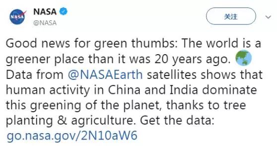 NASA稱,中國和印度的行動(dòng)主導(dǎo)了地球變綠?!鳱ASA推特截圖2月12日,美國國家航空航天局(NASA)在社交媒體上發(fā)文稱,“好消息:相比20年前,世界變得更‘綠色’了?!甆ASA地球’的衛(wèi)星顯示,發(fā)生在中國和印度的人類活動(dòng)主導(dǎo)了這次地球變綠,感謝植樹造林和農(nóng)業(yè)種植?!盢ASA官網(wǎng)文章介紹,地球現(xiàn)在...