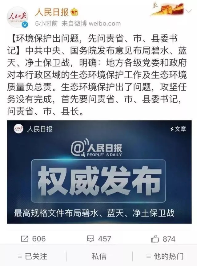中共中央、國務(wù)院發(fā)文:生態(tài)環(huán)保出問題 先問責(zé)省、市、縣委書記