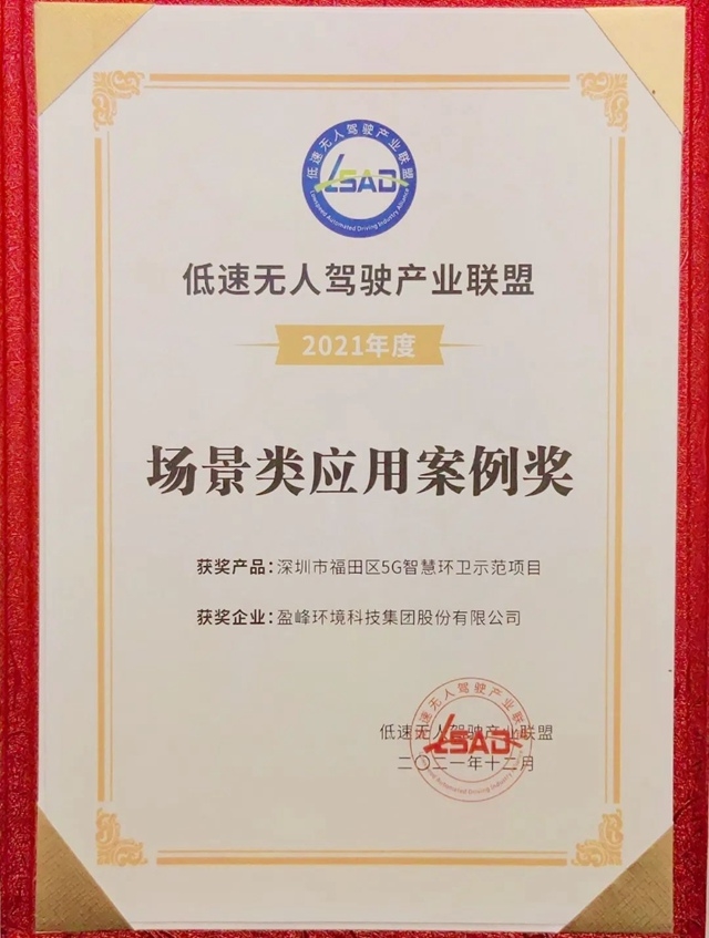 智創(chuàng)未來(lái) !盈峰環(huán)境榮獲低速無(wú)人駕駛“創(chuàng)新應(yīng)用案例”獎(jiǎng)