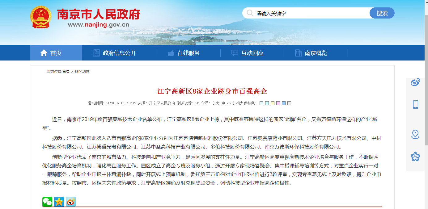 ——新的榮譽(yù)、新的“百強(qiáng)”、新的起航,萬德斯入選“江蘇省百強(qiáng)創(chuàng)新型企業(yè)”、“南京市百強(qiáng)高新技術(shù)企業(yè)”近日,江蘇省科技情報(bào)研究與江蘇省科技發(fā)展戰(zhàn)略研究院分別發(fā)布了“南京市2019年度百強(qiáng)高新技術(shù)企業(yè)”名單、“2019年江蘇省百強(qiáng)創(chuàng)新型企業(yè)”名單,南京萬德斯環(huán)??萍脊煞萦邢薰就瑫r(shí)位列兩張榜單之中,成為...