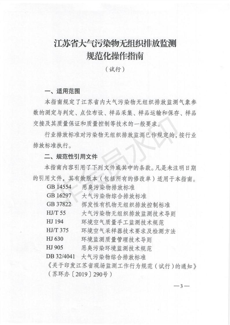 為規(guī)范指導(dǎo)江蘇省生態(tài)環(huán)境監(jiān)測機構(gòu)開展大氣污染物無組織排放監(jiān)測,強化污染溯源監(jiān)測、監(jiān)督執(zhí)法監(jiān)測的科學性、有效性和規(guī)范性,提升“科學治污、精準治污”能力,更好支撐大氣污染防治工作,近日,江蘇省生態(tài)環(huán)境廳印發(fā)了《江蘇省大氣污染物無組織排放監(jiān)測規(guī)范化操作指南(試行)》。 全文如下: ...