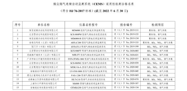中國環(huán)境監(jiān)測總站發(fā)布廢氣類適用性檢測合格名錄(截至2022年6月30日)