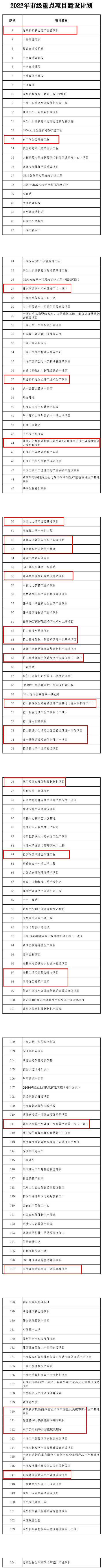 2022年,十堰市確定實施154個市級重點(diǎn)項目,涉及先進(jìn)制造業(yè)、現(xiàn)代服務(wù)業(yè)、重大基礎(chǔ)設(shè)施、生態(tài)文明建設(shè)、社會民生保障五大領(lǐng)域,總投資4130.9億元,年度計劃投資816.4億元。