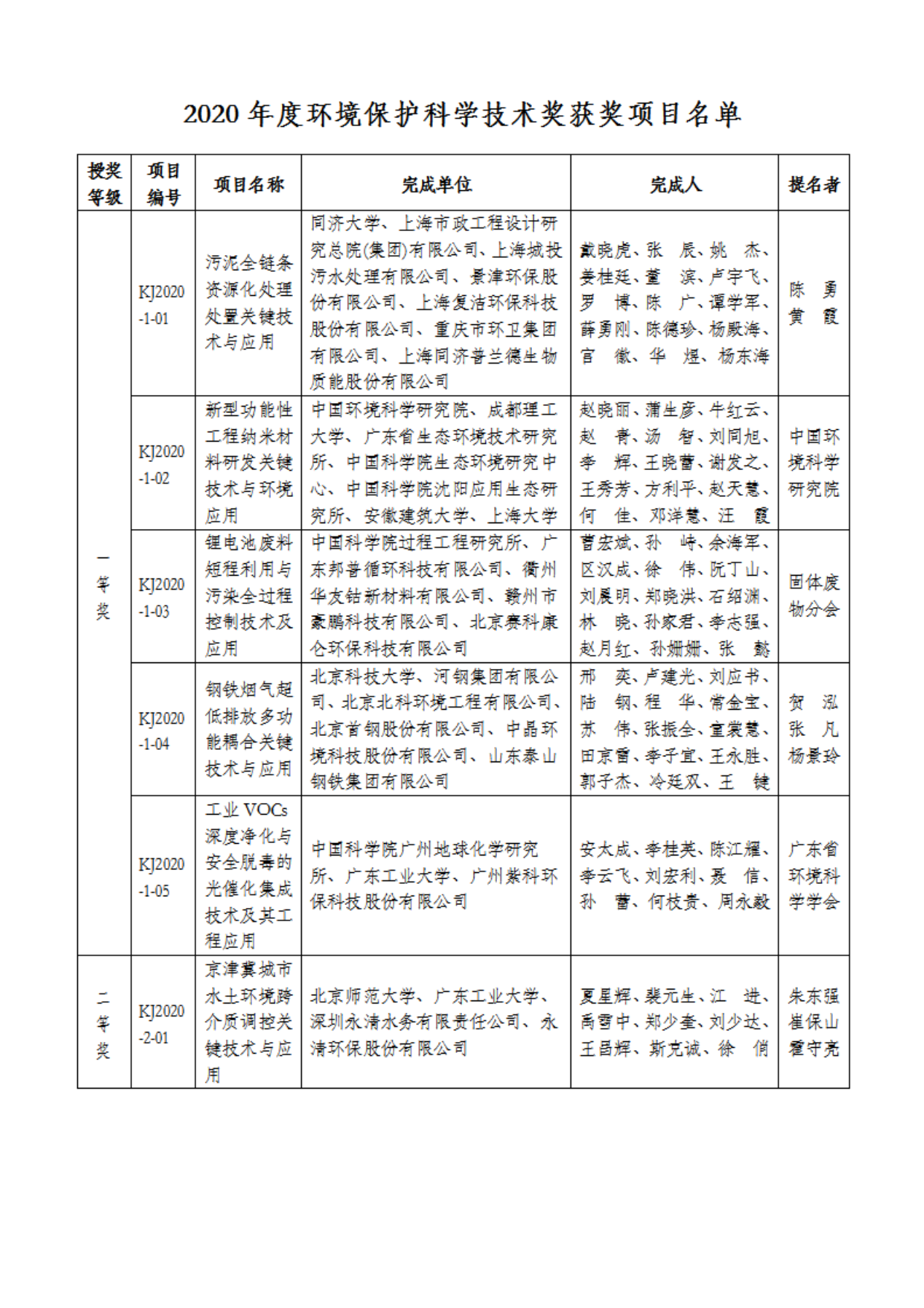 根據(jù)《環(huán)境保護(hù)科學(xué)技術(shù)獎(jiǎng)勵(lì)辦法》的規(guī)定,經(jīng)有關(guān)專家、單位提名和專家評(píng)審,并通過廣泛公示,環(huán)境保護(hù)科學(xué)技術(shù)獎(jiǎng)勵(lì)委員會(huì)批準(zhǔn)44個(gè)項(xiàng)目獲2020年度環(huán)境保護(hù)科學(xué)技術(shù)獎(jiǎng),其中:一等獎(jiǎng)5項(xiàng),二等獎(jiǎng)37項(xiàng),科普類獎(jiǎng)2項(xiàng)。 附:2020年度環(huán)境保護(hù)科學(xué)技術(shù)獎(jiǎng)獲獎(jiǎng)項(xiàng)目名單 環(huán)境保護(hù)科學(xué)技術(shù)獎(jiǎng)勵(lì)辦公室 2020年12...