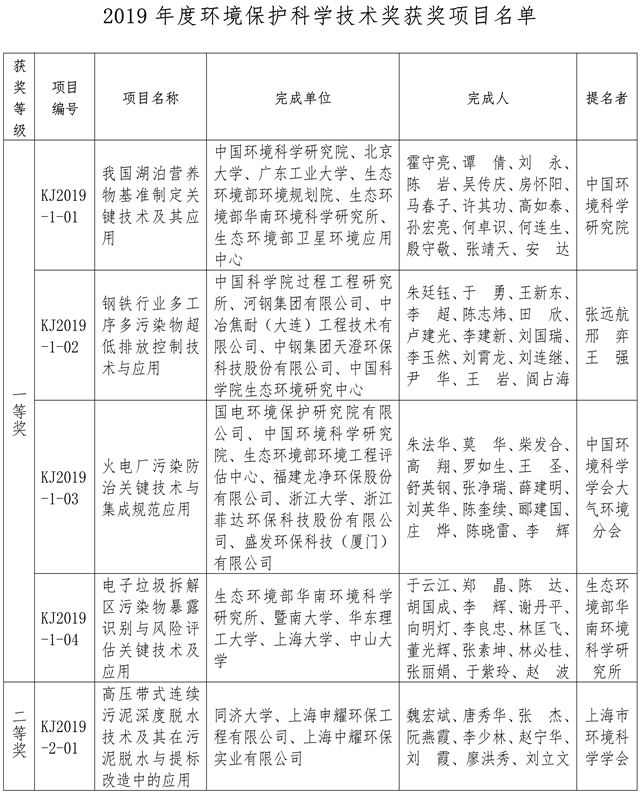 根據(jù)《環(huán)境保護科學(xué)技術(shù)獎勵辦法》的規(guī)定,經(jīng)有關(guān)專家、單位提名和專家評審,并通過廣泛公示,環(huán)境保護科學(xué)技術(shù)獎勵委員會批準(zhǔn)39個項目獲2019年度環(huán)境保護科學(xué)技術(shù)獎,其中:一等獎4項,二等獎33項,科普類獎2項。 附:2019年度環(huán)境保護科學(xué)技術(shù)獎獲獎項目名單 環(huán)境保護科學(xué)技術(shù)獎勵辦公室 2019年12...