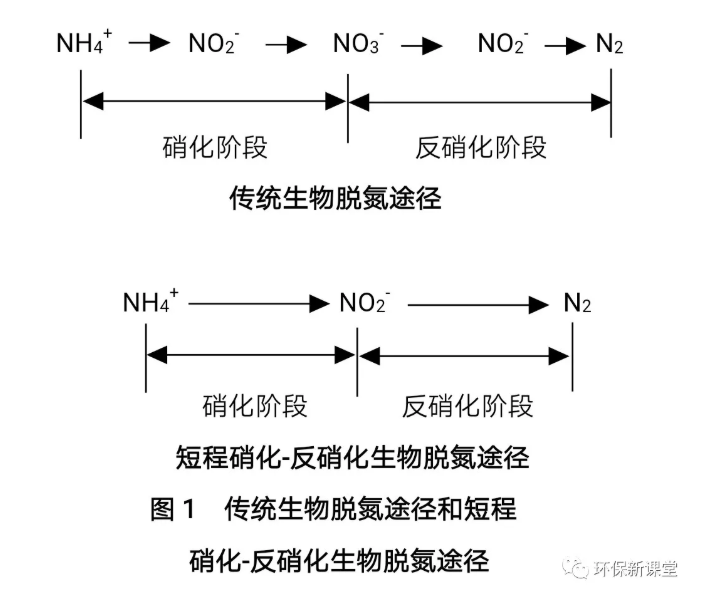 生物脫氮包括硝化和反硝化兩個反應(yīng)過程,第一步是由亞硝化菌將NH4+-N氧化為NO2--N的亞硝化過程;第二步是由硝化菌將NO2--N氧化為氧化為NO3--N的過程;然后通過反硝化作用將產(chǎn)生的NO3—N經(jīng)由NO2--N轉(zhuǎn)化為N2,NO2--N是硝化和反硝化過程的中間產(chǎn)物。1975年Voet...