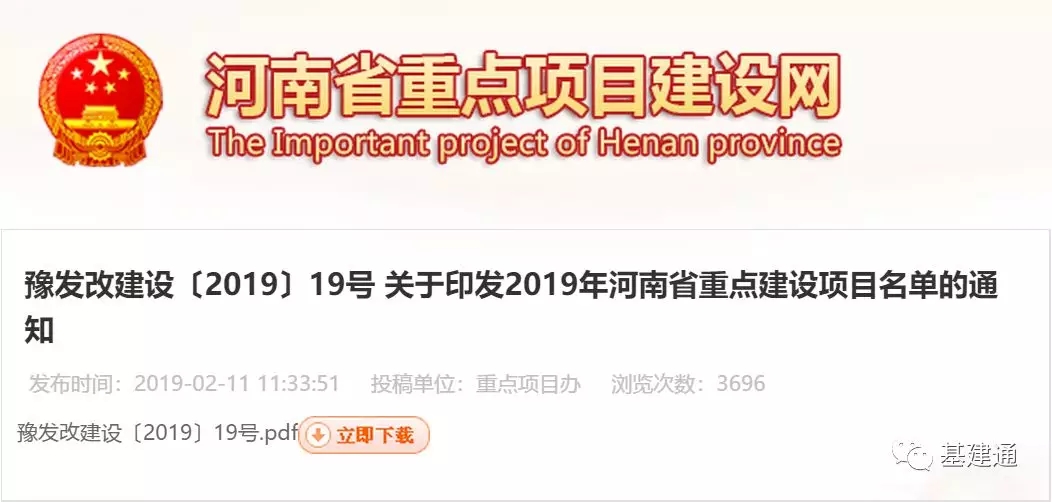 2月11日,河南省發(fā)改委發(fā)布《關(guān)于印發(fā)2019年河南省重點(diǎn)建設(shè)項(xiàng)目名單的通知》。名單共列項(xiàng)目910個(gè),總投資3.1萬(wàn)億元,2019年計(jì)劃完成投資7939億元,涵蓋了產(chǎn)業(yè)轉(zhuǎn)型發(fā)展、創(chuàng)新驅(qū)動(dòng)、基礎(chǔ)設(shè)施、新型城鎮(zhèn)化、生態(tài)環(huán)保、民生和社會(huì)事業(yè)六大領(lǐng)域18個(gè)行業(yè)。其中計(jì)劃竣工項(xiàng)目149個(gè)、續(xù)建項(xiàng)目433個(gè)、計(jì)...