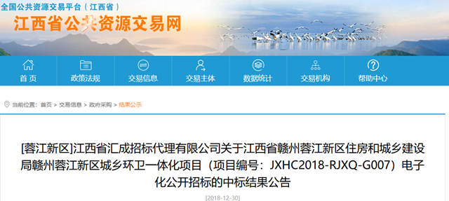 江西省贛州蓉江新區(qū)城鄉(xiāng)環(huán)衛(wèi)一體化項(xiàng)目發(fā)布中標(biāo)結(jié)果公告,龍馬環(huán)衛(wèi)和中聯(lián)環(huán)境分獲一、二標(biāo)段。其中,一標(biāo)段中標(biāo)金額達(dá)1.08億,二標(biāo)段中標(biāo)金額達(dá)1.15億,項(xiàng)目總金額達(dá)2.23億。 12月6日,該項(xiàng)目發(fā)布招標(biāo)公告,根據(jù)公告顯示,項(xiàng)目的招標(biāo)內(nèi)容如下: 原標(biāo)題:江西贛州城鄉(xiāng)環(huán)衛(wèi)一體化項(xiàng)目結(jié)果發(fā)布,龍馬、中聯(lián)分...