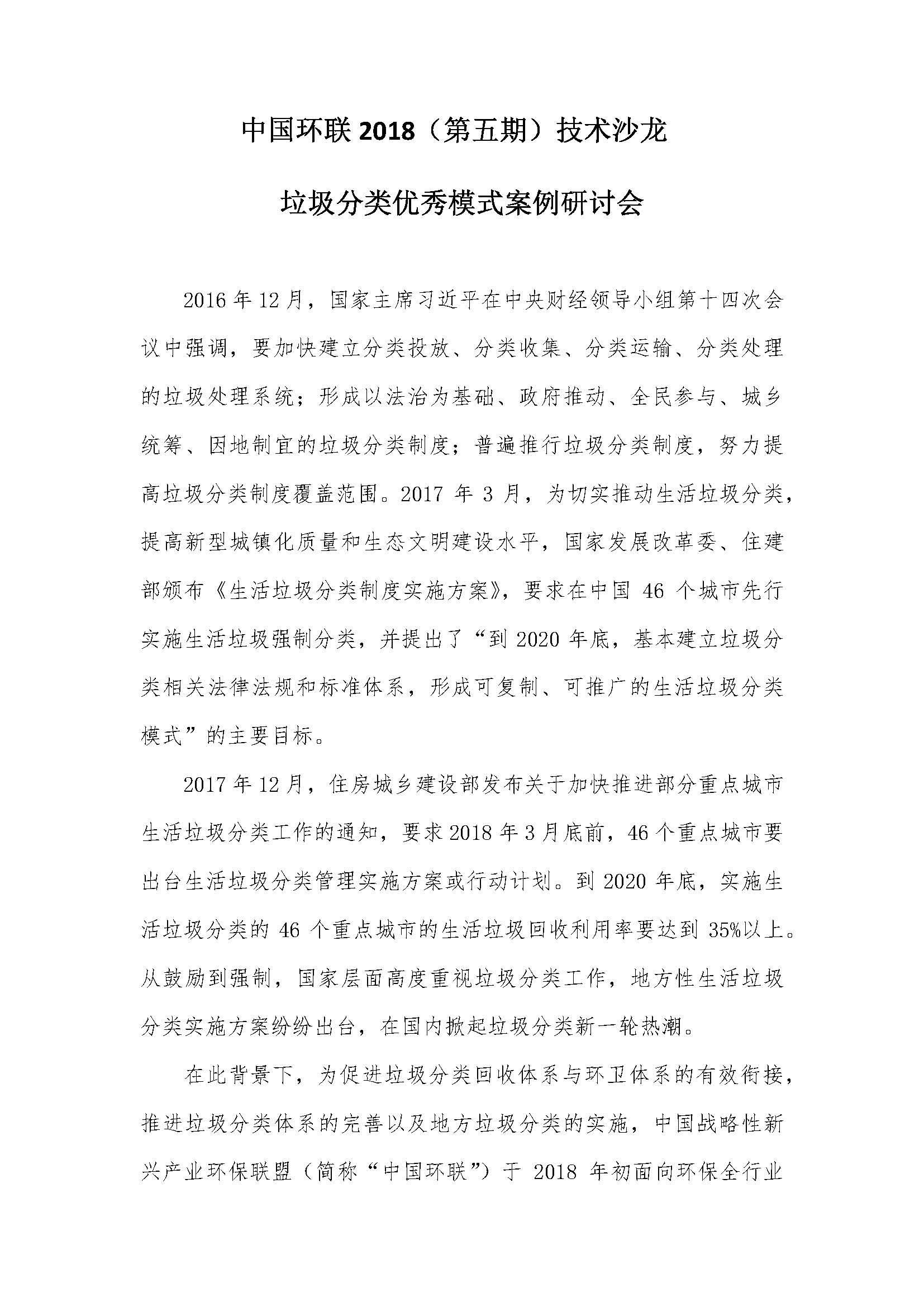 關(guān)于征集“垃圾分類優(yōu)秀模式案例”的通知2016年12月,國(guó)家主席習(xí)近平在中央財(cái)經(jīng)領(lǐng)導(dǎo)小組第十四次會(huì)議中強(qiáng)調(diào),要加快建立分類投放、分類收集、分類運(yùn)輸、分類處理的垃圾處理系統(tǒng);形成以法治為基礎(chǔ)、政府推動(dòng)、全民參與、城鄉(xiāng)統(tǒng)籌、因地制宜的垃圾分類制度;普遍推行垃圾分類制度,努力提高垃圾分類制度覆蓋范圍。20...