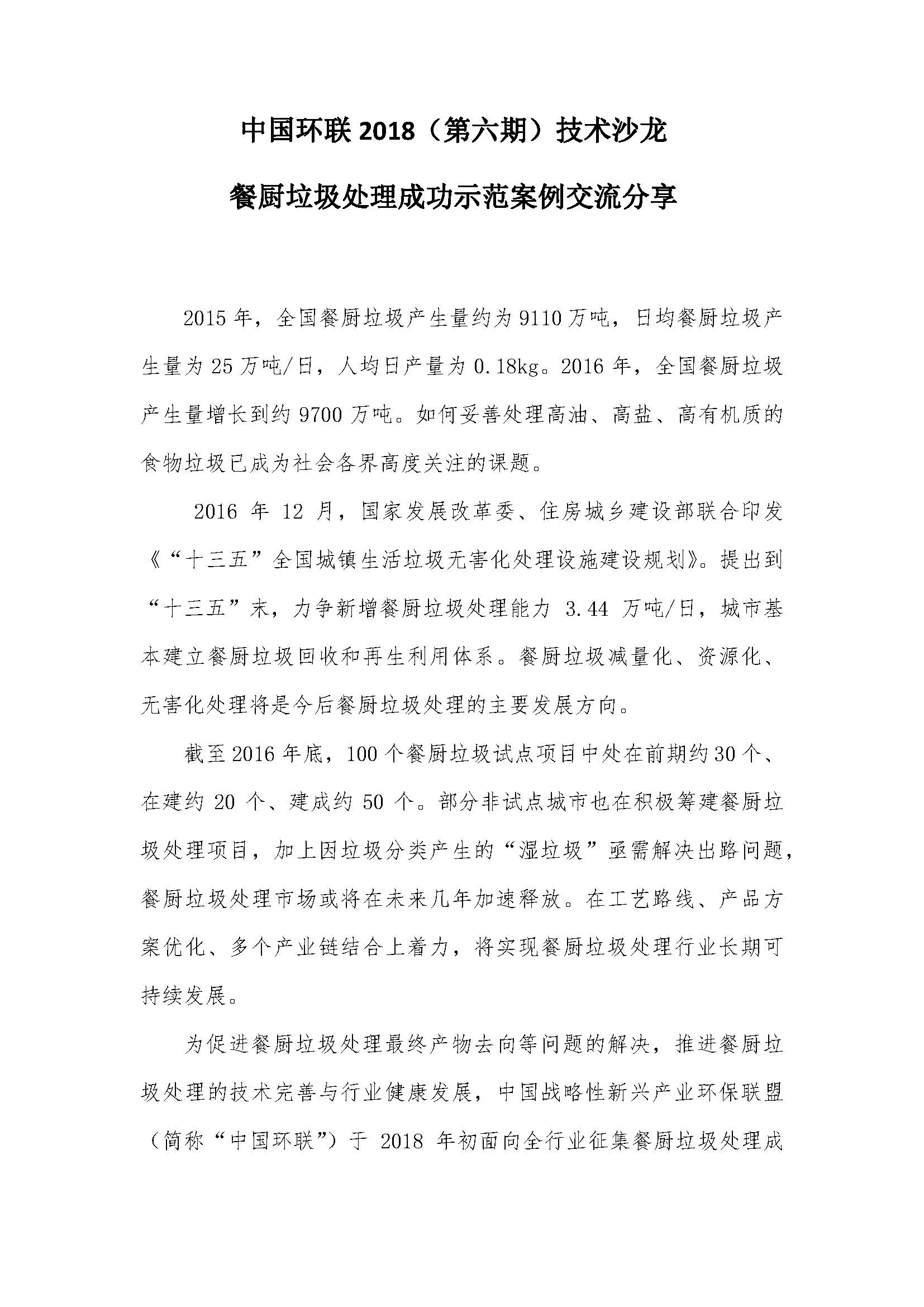 關(guān)于征集餐廚垃圾處理優(yōu)秀案例的通知2015年,全國(guó)餐廚垃圾產(chǎn)生量約為9110萬(wàn)噸,日均餐廚垃圾產(chǎn)生量為25萬(wàn)噸/日,人均日產(chǎn)量為0.18kg。2016年,全國(guó)餐廚垃圾產(chǎn)生量增長(zhǎng)到約9700萬(wàn)噸。如何妥善處理高油、高鹽、高有機(jī)質(zhì)的食物垃圾已成為社會(huì)各界高度關(guān)注的課題。2016年12月,國(guó)家發(fā)展改革委、...