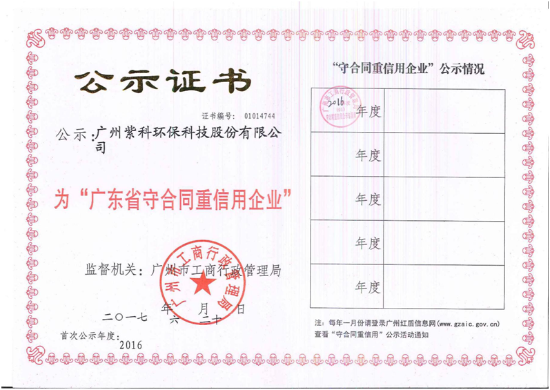 近日,順利通過省工商行政管理局評審,獲得2016年度廣東省“守合同重信用企業(yè)”,此舉肯定了紫科環(huán)保誠信守約經(jīng)營、信用文化建設(shè)與良好的客戶口碑?!皬V東省守合同重信用企業(yè)”獲評企業(yè),均為有實(shí)力的誠信標(biāo)桿企業(yè)。它是由廣東省工商行政管理局評定頒發(fā)的,用于鼓勵企業(yè)加強(qiáng)合同和信用管理,促進(jìn)當(dāng)?shù)仄髽I(yè)信用體系建設(shè)。...