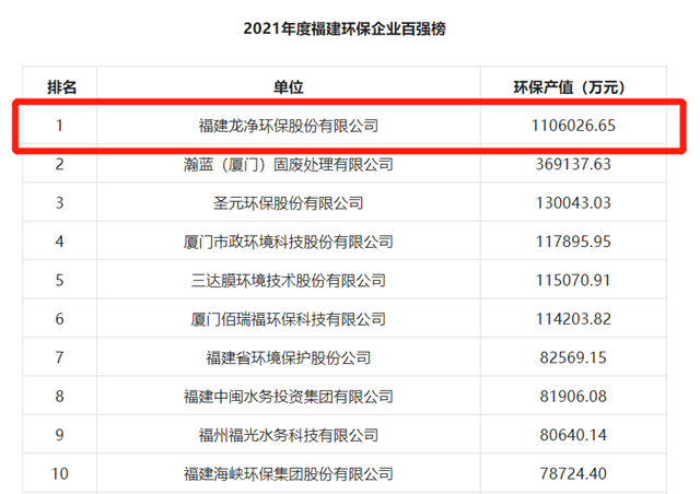 2022年6月6日,福建環(huán)保產(chǎn)業(yè)協(xié)會(huì)發(fā)布2021年度福建環(huán)保企業(yè)百?gòu)?qiáng)榜名單,龍凈再次榮登百?gòu)?qiáng)榜榜首,是全省唯一一家營(yíng)收超過(guò)百億的環(huán)保企業(yè)。 據(jù)悉,福建環(huán)保企業(yè)百?gòu)?qiáng)榜是基于2021年度全國(guó)環(huán)保產(chǎn)業(yè)重點(diǎn)企業(yè)基本情況調(diào)查產(chǎn)生的,是以各單位當(dāng)年環(huán)保產(chǎn)值為主要依據(jù)。龍凈2021年年報(bào)顯示,營(yíng)業(yè)收入113億元,...