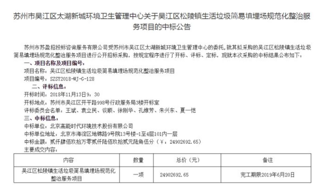 本小贏家剛剛從蘇州市公共資源交易中心網(wǎng)獲悉,北京高能時(shí)代環(huán)境技術(shù)股份有限公司中標(biāo)吳江區(qū)松陵鎮(zhèn)生活垃圾簡(jiǎn)易填埋場(chǎng)規(guī)范化整治服務(wù)項(xiàng)目,合同2490萬(wàn)元。 另外本小贏家從湖北政府購(gòu)買服務(wù)信息平臺(tái)獲悉,北京高能時(shí)代環(huán)境技術(shù)股份有限公司中標(biāo)荊門(mén)市中心城區(qū)生活垃圾焚燒處置項(xiàng)目。本項(xiàng)目建設(shè)地點(diǎn)位于荊門(mén)市高新區(qū)·掇...
