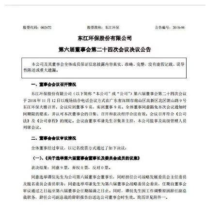 東江環(huán)保發(fā)布公告,于2018年11月12日舉行的第六屆董事會(huì)第24次會(huì)議,董事會(huì)選舉譚侃為第六屆董事會(huì)董事長(zhǎng),任期自董事會(huì)審議通過(guò)之日起至本屆董事會(huì)屆滿之日止。董事會(huì)選舉譚侃為第六屆董事會(huì)戰(zhàn)略發(fā)展委員會(huì)主席,選舉鄧謙為第六屆董事會(huì)戰(zhàn)略發(fā)展委員會(huì)委員,與曲久輝共同構(gòu)成第六屆董事會(huì)戰(zhàn)略發(fā)展委員會(huì)。董事會(huì)...